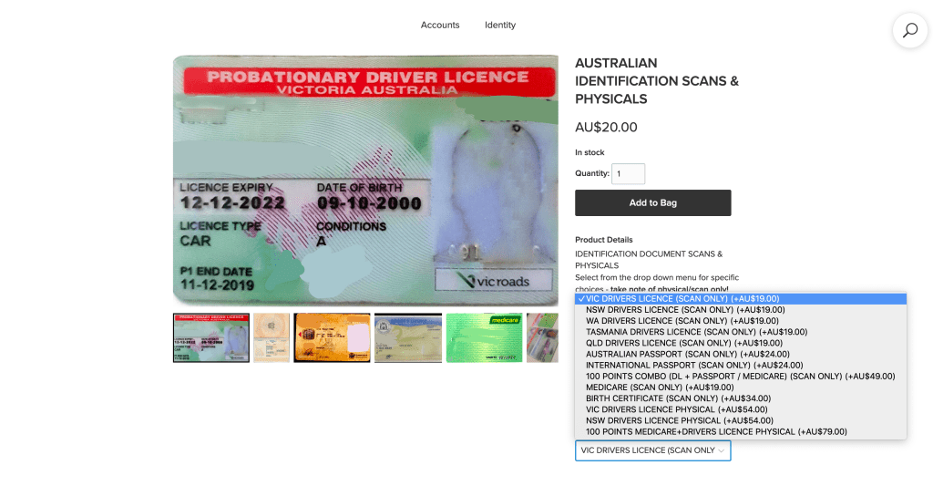 - Drivers Licence/Medicare/Passport Scans – Used heavily for identity takeover
